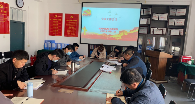 4月1日,航海与船舶工程学院召开党政联席会议研究布置专项工作。会议由党总支书记李俊柱主持。党总支委员、办公室主任、教研室主任、全体辅导员参加会议。
