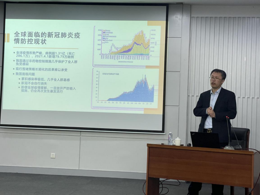 宣讲会上,张清从全球面临的新冠肺炎防控现状及疫苗接种概况、医疗机构新冠病毒疫苗临时接种单位设置要求、国家卫健委第一版新冠病毒疫苗接种技术指南、新冠病毒疫苗接种实施要求四方面内容进行了介绍和解读。在张清的讲解下,与会辅导员和研究生了解了我国当前接种剂次高,但是人口接种普及率低的现状;了解了位置选择、功能设置、设置管理和场所公示等疫苗接种工作规范;了解了接种人群、接种禁忌、不良反应等疫苗科普知识;了解了我国疫苗的接种程序和疫苗管理机制。最后,张清引用上海市华山医院感染科主任张文宏医生采访中的原话,结合自身接种疫苗的亲身体验,鼓励广大师生打消顾虑,积极配合国家的疫苗接种工作,为构建健康社会贡献出自己的一份力量。