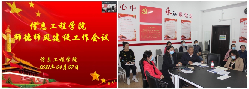 4月7日下午,信息工程学院采用线上线下相结合的方式召开了全院师德师风建设工作会议,本次会议由学院党总支书记于振作主持。