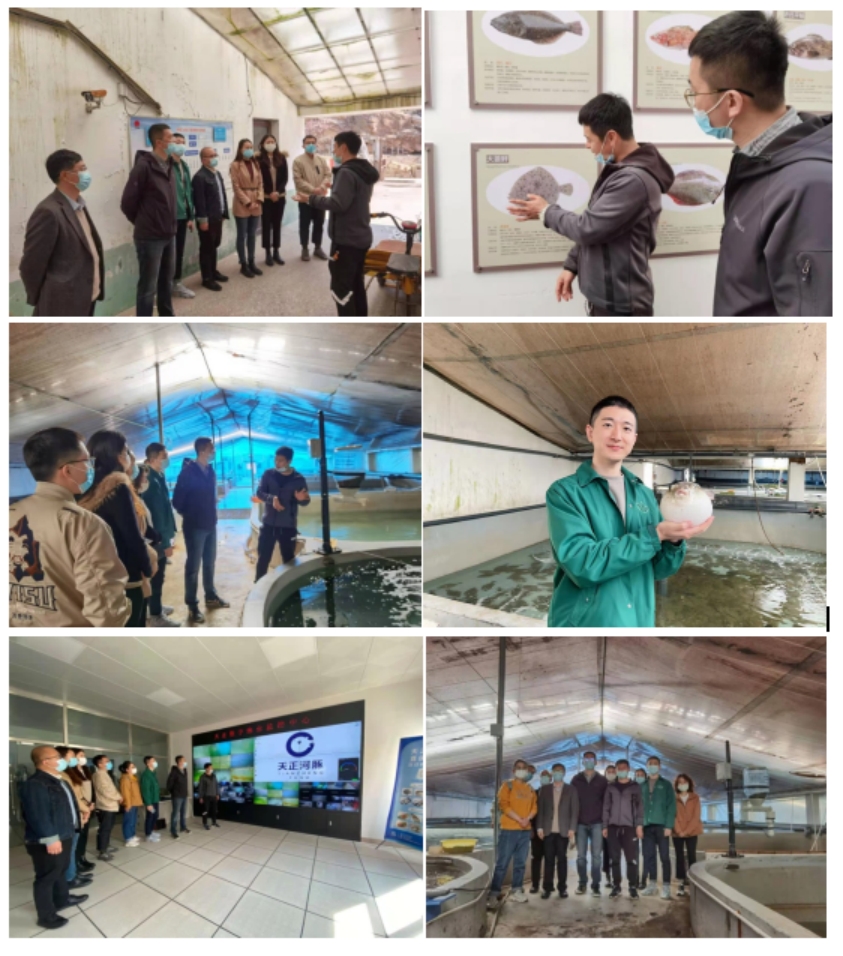 在学院2000级校友、天正集团养殖二厂厂长张涛的带领下,辅导员们依次参观了工业化循环水健康养殖车间和天正数字渔业监控中心,张厂长向大家介绍了养殖二厂概况、车间循环水处理系统和天正工业化循环水养殖的主要品种及常见食用鱼类的鉴别方法。