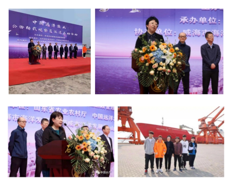4月10日,中国远洋渔业公海转载观察员派遣启动活动在山东荣成石岛新港举行。我国首批由农业农村部派遣的5名转载观察员均为大连海洋大学培训生,他们正式登临远洋渔业运输船,代表中国政府执行公海转载监督任务。农业农村部渔业渔政管理局二级巡视员赵丽玲,中国远洋渔业协会会长张显良、副会长黄宝善,威海市政府副秘书长刘伟,荣成市副市长白雪松及来自山东、福建省渔业主管部门相关人员出席活动。航海与船舶工程学院院长隋江华参加此次启动活动。