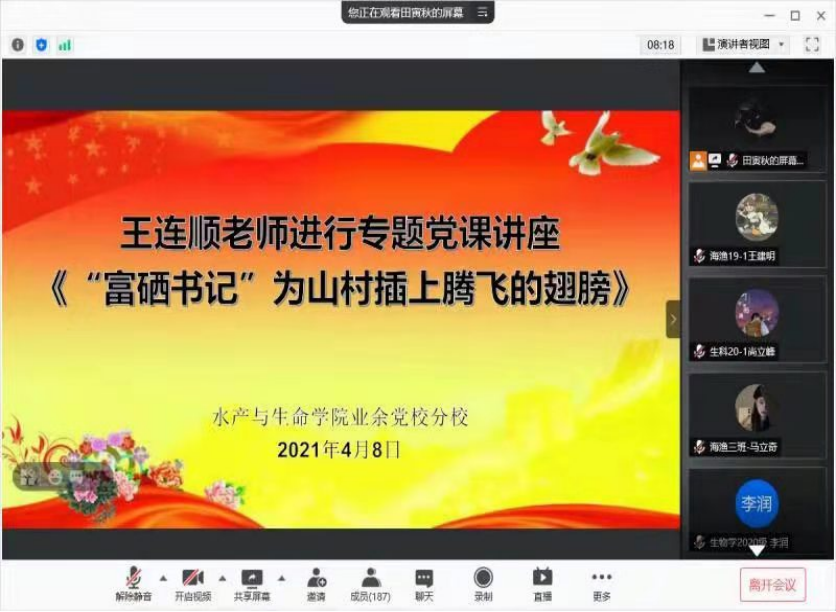 为规范发展党员工作,保证新发展党员的力量,4月8日晚,水产与生命学院举办了第十三期入党积极分子专题讲座,学院党总支副书记张家润、本科生党支部书记、组织员及全体第十三期积极分子参加本次活动。