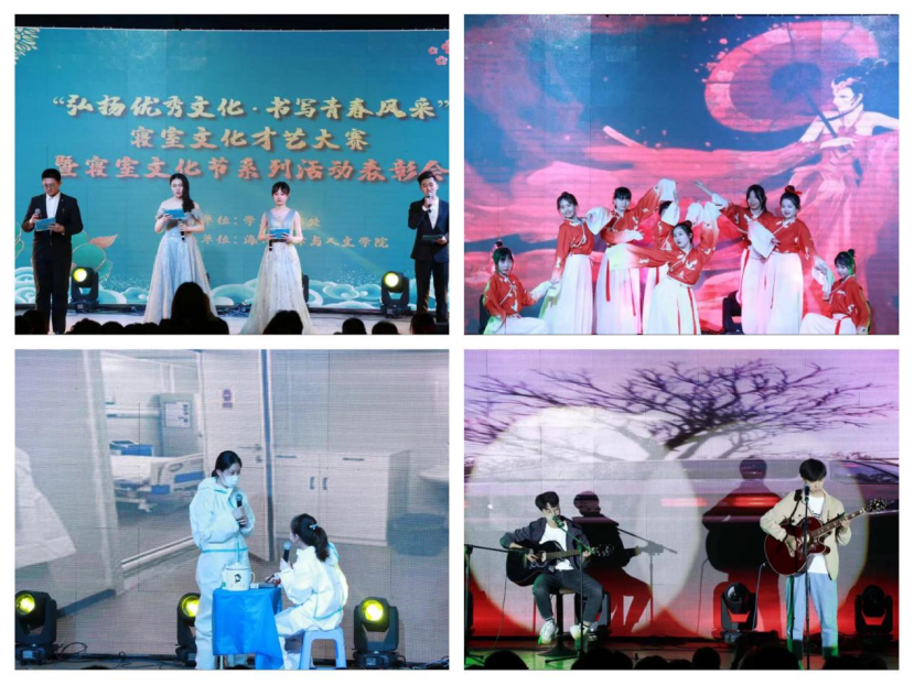 寝室才艺大赛共有来自9个学院的13个寝室参加,包括舞蹈类、歌曲类和语言类等节目。大赛在冷指乐队的精彩演出中拉开序幕,经过激烈角逐,海洋法律与人文学院4-305寝室和信息工程学院7-103寝室获得一等奖,海洋与土木工程学院2-123寝室等3个寝室获得二等奖,外国语与国际教育学院1-415寝室等4个寝室获得三等奖。在比赛过程中,对寝室文化节系列活动中的“雅舍扶人心,室友共和睦”文明寝室评比、“文明消费、节约用餐”承诺书设计与倡议、“最强我的国”寝室手抄报设计展览以及“青春告白祖国,奋斗绽放芳华”寝室文化设计比赛的获奖寝室进行了表彰。