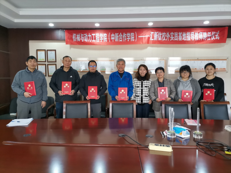 4月19日 ,机械与动力工程学院(中新合作学院)副院长潘澜澜一行赴大连汇新钛设备开发有限公司签署专业学位研究生联合培养协议,并为企业实践导师颁发导师受聘证书。