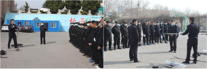 培训中,参训人员现场学习了如何穿戴防刺服,防刺手套,防暴头盔;如何使用防暴叉、催泪喷射器、防暴盾牌、伸缩棍、抓捕器、狼牙棍等器械制服不法分子,实战演练了四人一组为单位防御、抓捕不法分子的技巧及方法。