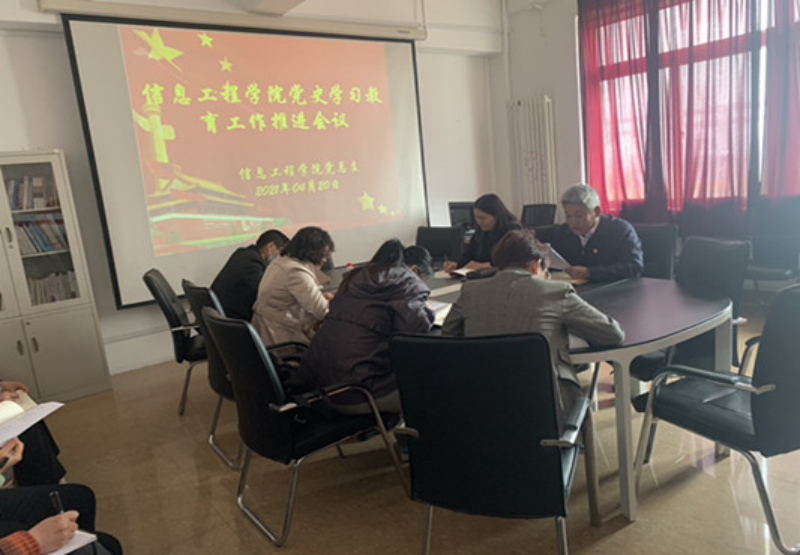 4月20日下午,信息工程学院党总支在学院党员活动室召开了党史学习教育推进会议,学院班子成员及党支部书记参加了此次会议,会议由党总支书记于振作主持。