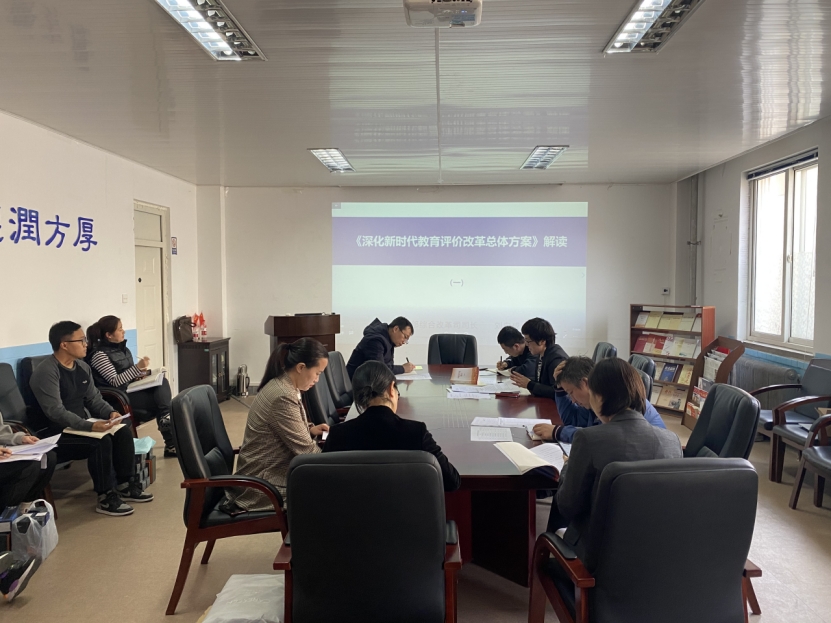 会上,邱金英传达了学校《总体方案》学习讨论活动相关要求,带领与会人员专题学习了《深化新时代教育评价改革总体方案》(以下简称《总体方案》),并就学院开展《总体方案》学习讨论活动进行具体安排。随后,组织与会人员集体学习观看教育部综合改革司刘自成司长全面解读《总体方案》视频。