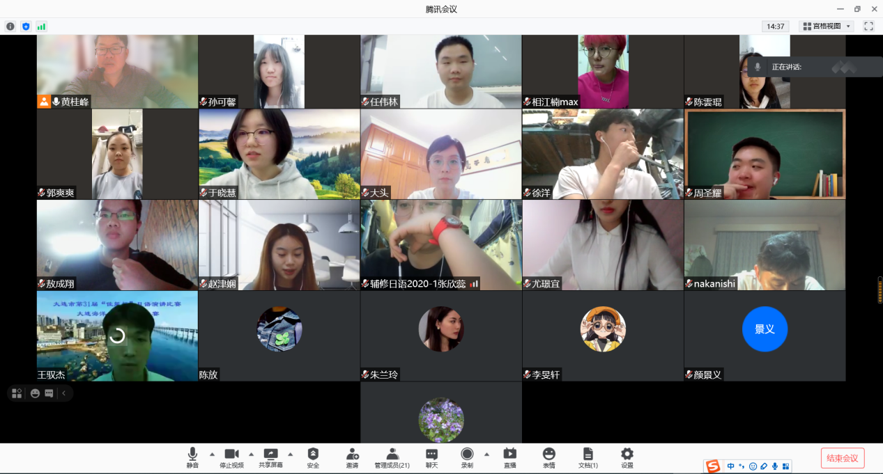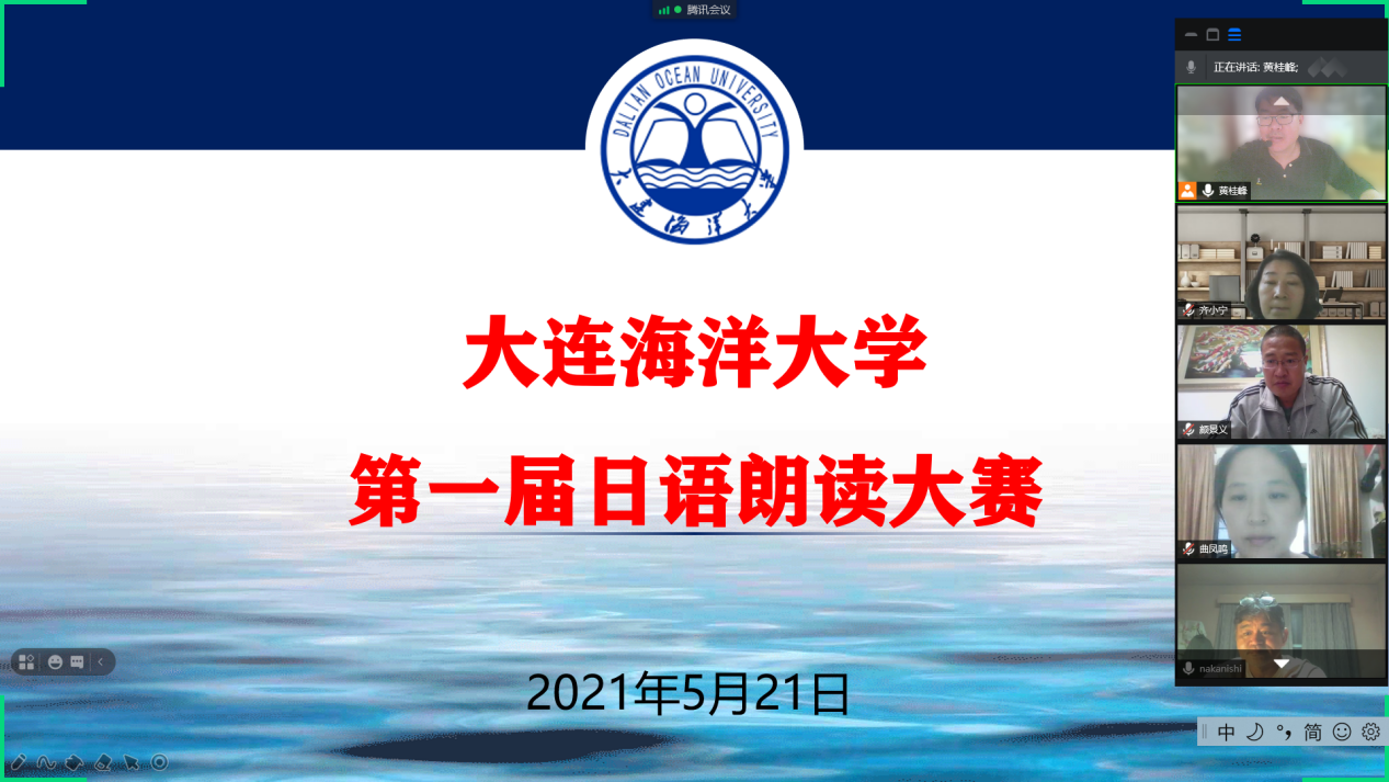 5月22日,由我校创新创业学院主办、外国语与国际教育学院承办的大连海洋大学首届日语朗读大赛通过腾讯会议开展。外国语与国际教育学院副院长张苏、日语教研室主任黄桂峰、日籍教师及日语专业教师担任评委,全校2020级日语专业和非日语专业学生参加了比赛。