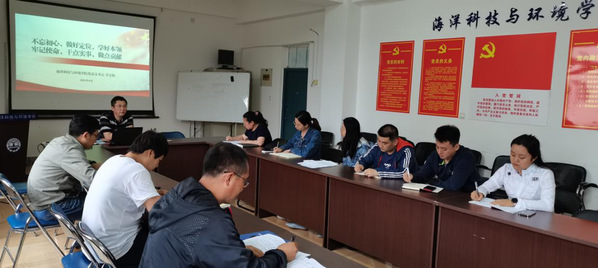 关呈俊以共产党人的初心和使命为切入点,详细讲述了开展党史学习教育的意义,从共产党人的初心和使命引申到海大人、海环人的初心和使命,从四史学习到回顾中国共产党100年走过的光辉历程,引导大家要从党的非凡历程中领会马克思主义的真理力量和实践力量,做坚定的马克思主义学习者、研究者、传播者。关呈俊指出,大家要坚持和坚信党的领导,坚持走中国特色社会主义道路,坚持唱响时代的主旋律,坚定不移地向党中央看齐,不忘初心,从四史中汲取前进动力。