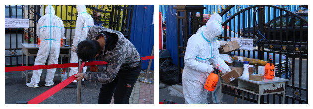 每天11:00—13:30和16:00—19:30两个时间段,在大家享受午间休息和进行晚间锻炼时,接触快递的队员早已身着防护服,在快递点对包裹进行“六面”细致消杀,不留死角,不留盲区。其余队员在现场维持秩序,提醒同学们保持一米的间距,对未佩戴口罩的学生免费分发口罩,时刻提醒大家自觉做好防护。通过层层消杀、层层防控,确保每一个快递能够安全迅速地交到同学们手中。