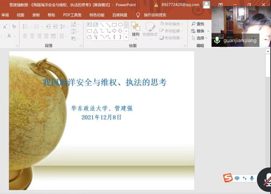12月8日,第二届海洋安全(维权)与执法论坛采用腾讯会议的方式线上举行。本次论坛由我校海洋法治与文化研究中心、海洋法治与治理重点实验室主办,上海交通大学国家战略研究院海洋战略研究中心和海南大学国际海洋法与争端解决中心协办。来自全国高校、科研机构的260余名学者、师生通过线上参与本次论坛。