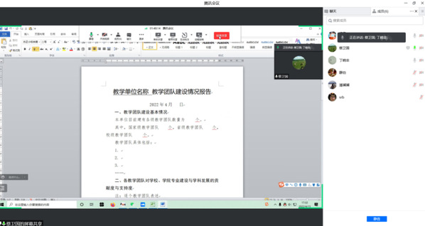 为了进一步落实学院“十四五”规划发展举措,搭建教师队伍发展平台,提高教师的业务水平,提升学院教育教学质量。4月15日,机械与动力工程学院(中新合作学院)在线上召开教学团队建设交流研讨会,院长丁晓非、副院长蔡卫国、副院长潘澜澜及各专业负责人、教研室主任参加,会议由副院长蔡卫国主持。
