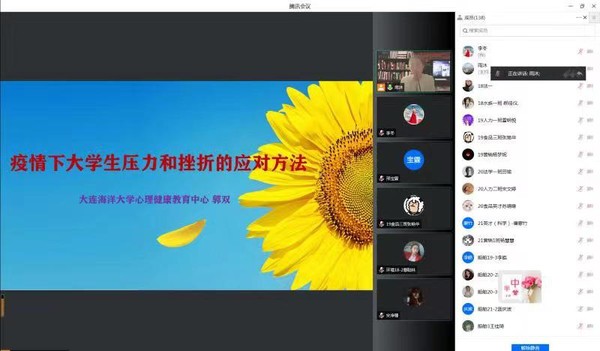 郭双与同学们进行了在线互动,依次解答了同学们提出的封校期间遇到的心理问题,并期望心理委员能够承担起自己的工作职责,做好朋辈心理辅导,积极向同学们宣传心理健康知识和心理咨询方式,协助老师缓解疫情封校期间同学们的心理压力和焦虑情绪。