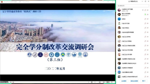 5月10日下午,作为省教育厅“组团式”调研工作完全学分制改革第三调研组牵头单位,我校通过腾讯会议组织召开了完全学分制改革第三调研组交流调研会。来自大连海事大学、大连工业大学、大连民族大学、大连交通大学、辽宁警察学院、大连大学、辽宁对外经贸学院、大连艺术学院、大连东软信息学院、大连理工大学城市学院及我校共11所在连高校的32位教务同仁参加了会议。会议由教务处处长田春艳主持。