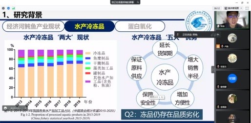 会上,郑尧博士分享了从硕士研究生到博士阶段的学习经历及做科研的心得体会,针对本科生和研究生分别提出中肯的建议,强调在科研过程中保持积极的学习态度以及学习之余如何利用各项资源充实自己的重要性,并就博士阶段课题“冻藏过程中养殖暗纹东方鲀蛋白氧化与肌肉稳定性的关系”与参会师生进行了学术交流,开拓了与会师生的视野。