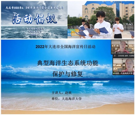 6月8日是第十四个“世界海洋日”和第十五个“全国海洋宣传日”,为提升全民海洋意识和人与自然和谐共生理念,营造良好的海洋文化氛围,增强建设海洋中心城市的自豪感和使命感,大连市自然资源局和我校联合开展了“大连市2022年世界海洋日暨全国海洋宣传日宣传活动”。