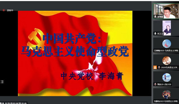 6月16日,马克思主义学院在腾讯会议线上举办了庆祝建校七十周年系列学术讲座第三场学术报告会。本次活动邀请了中共中央党校马克思主义学院21世纪马克思主义研究所所长、博士生导师、中央党校创新工程首席专家李海青教授作专题报告。报告会由学院党总支副书记兼副院长吴卫卫主持,马克思主义学院全体师生、学校青马工程全体学员参加报告会。