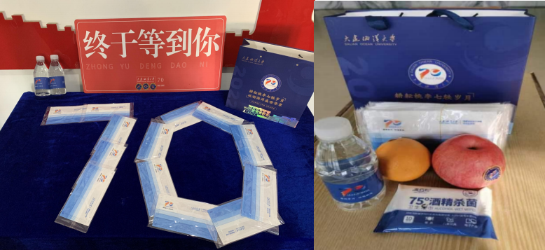 久违的校园,久违的你我,不变的是校园暖心守候。在这特殊时刻,学校精心、尽心、暖心护航学生返校报到。在喜迎我校建校七十年周年之际,为返校研究生精心准备“耕耘桃李七轶岁月,砥砺海洋盛世华章”的爱心大礼包,礼包中既有专门定制的口罩、水、湿巾,还有应季的苹果、橙子等,有效保障了学生返校报到后的防疫物资需求,更表达了学校对同学们细致入微的关爱。