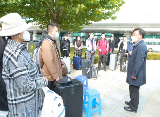 组建由研工部门志愿者、机关教工志愿者和学生志愿者40余人的师生志愿者小队,驻扎在大连机场、大连北站等6个场站,24小时“点对点”将学生接至学校。