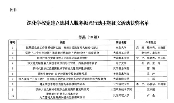 据悉,本次活动参赛作品经专家评审,最终评选出一等奖10名,二等奖20名,三等奖32名,优秀奖征文25名。此次活动的征文作品紧密结合辽宁高校基层党建工作实际,畅谈思考认识、阐释工作理念、分享工作经验,充分展示了我省高校基层党务工作者昂扬奋进的精神风貌。