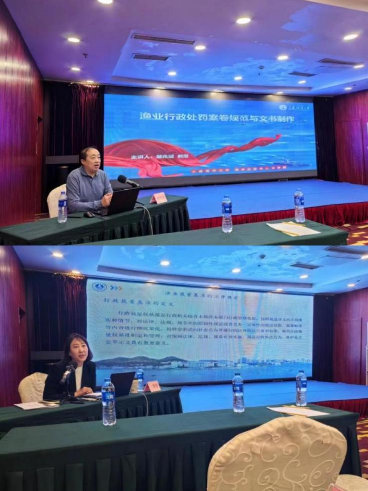 培训会上,裴兆斌结合行政执法典型案例讲解了渔业行政执法案卷与文书制作实务,王黎黎对海洋与渔业行政处罚裁量基准实务及案例进行了深入评析。