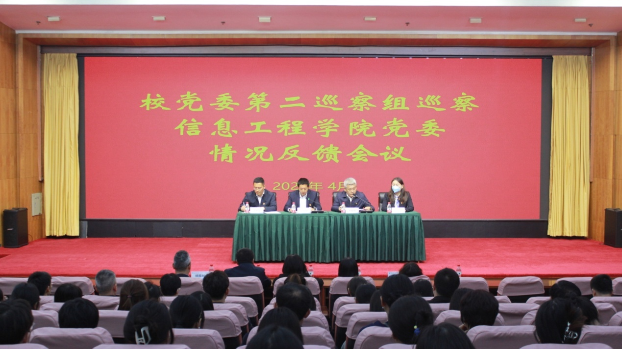根据校党委巡察工作领导小组的部署,4月19日,校党委第二巡察组巡察信息工程学院党委情况反馈会议在图书馆报告厅召开。校党委第二巡察组全体成员出席会议,信息工程学院领导班子成员、全体教职工、学生党员参加会议。会议由学院党委书记于振作主持。