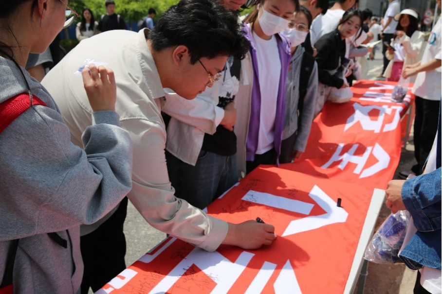 本次活动以“人人讲安全,个个会应急——着力提升基层防灾避险能力”为主题,聚焦于普及防灾减灾知识,提高全校师生防灾减灾意识,共筑平安校园的职责与义务。在“防灾减灾,从我做起”环节,为师生发放刻有紧急报警电话的钥匙扣。师生们在印有“人人讲安全,个个会应急”的宣传条幅上纷纷签下自己的名字,并郑重承诺:“防灾减灾,从小事做起;防灾减灾,从你我做起”。