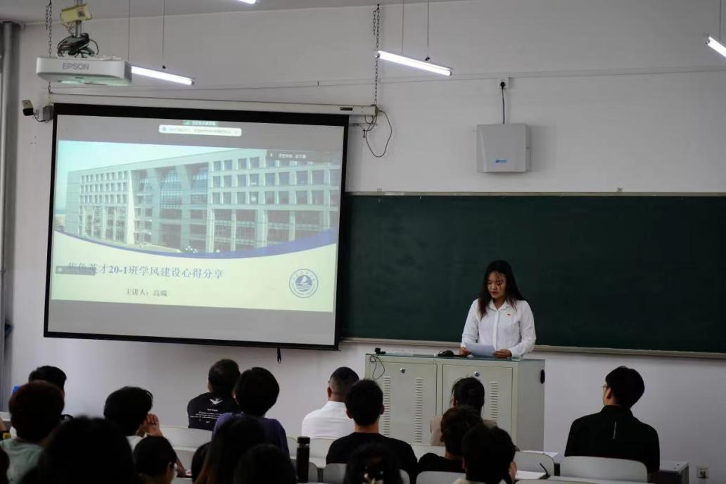 随后,2020级蓝色英才班团支书高瑞分享了班级学风建设经验,在明确班委工作职责的同时,强调班委应该起带头作用,呼吁并带领同学们共同参加各项比赛及课外活动。