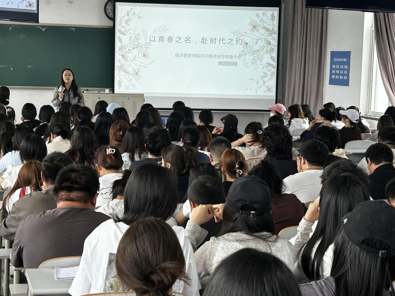 为切实做好2020级毕业生文明离校教育工作,营造安全、有序的毕业氛围,引导学生以积极的面貌踏上人生新起点。近日,经济管理学院在大黑石校区2教502教室召开2020级毕业生年级大会,辅导员鞠春晓及2020级全体本科生参会。