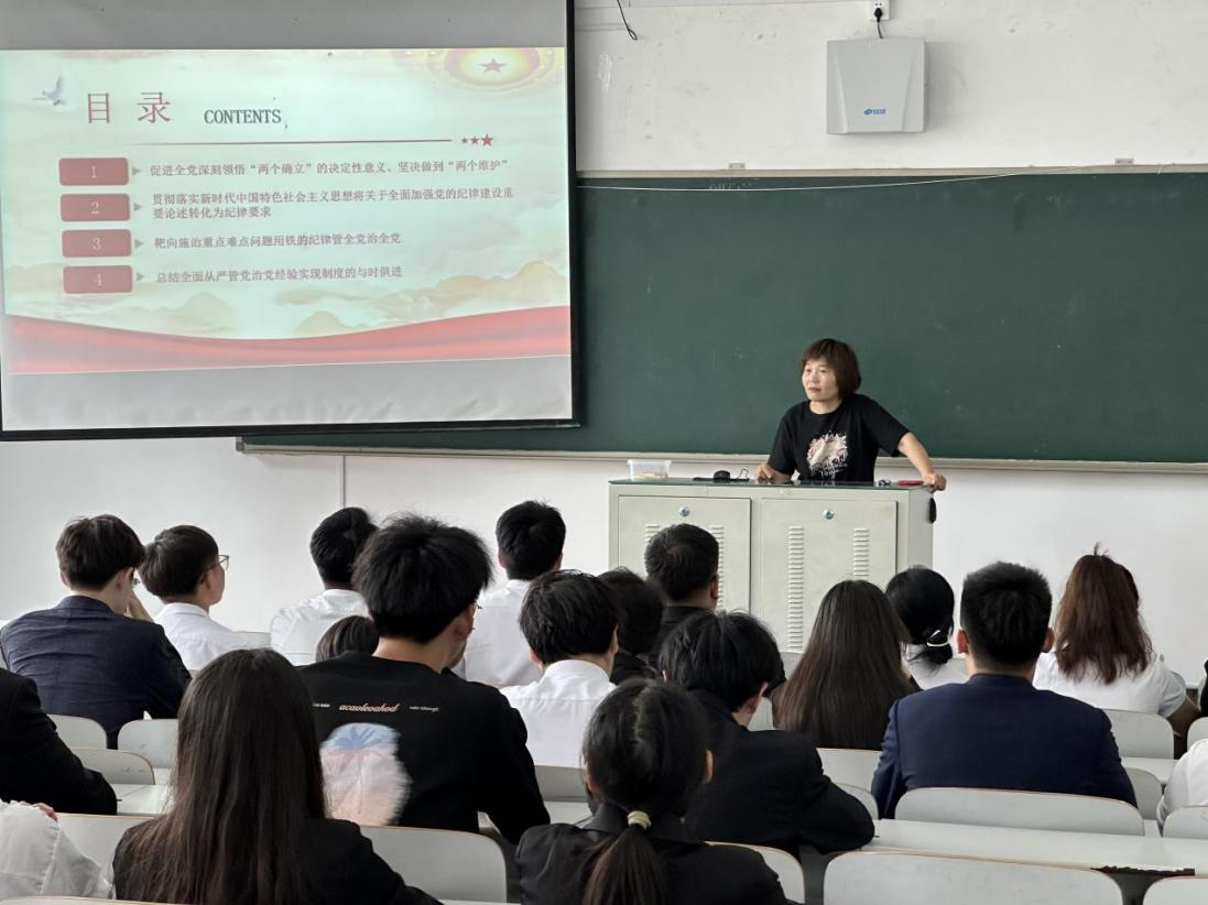 为推进党纪学习教育走深走实,切实增强学生党员遵规守纪意识,6月21日,学院党委副书记谭利娟在獐教104为本科生党员讲授题为“学条例 守党纪”的专题党课。