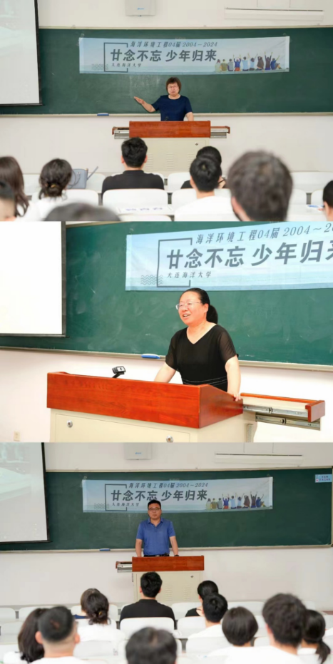 6月22日,海洋科技与环境学院环境工程2004级20位校友携部分家属相约重返校园,纪念师生、同学相识20年。海洋科技与环境学院党委副书记刘宁、海洋技术专业负责人张瑞瑾、环境工程专业负责人张俊新、辅导员许泽阳、张光耀以及10位“我身边的海洋”在校学生志愿者参加活动。
