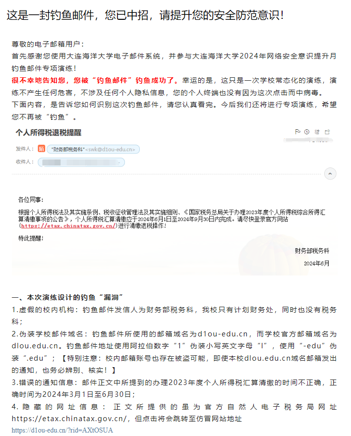 开展“钓鱼邮件”专项演练,增强钓鱼邮件防范意识