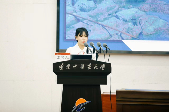 会上,学院2022级研究生万羽墨以“重温红色记忆·感悟初心使命——大学生讲思政课有感”为题,围绕大连地区红色文化资源、作品制作与体会感悟进行了交流发言,并就新时代青年如何讲好党的最新理论、讲好党史国史进行经验分享。