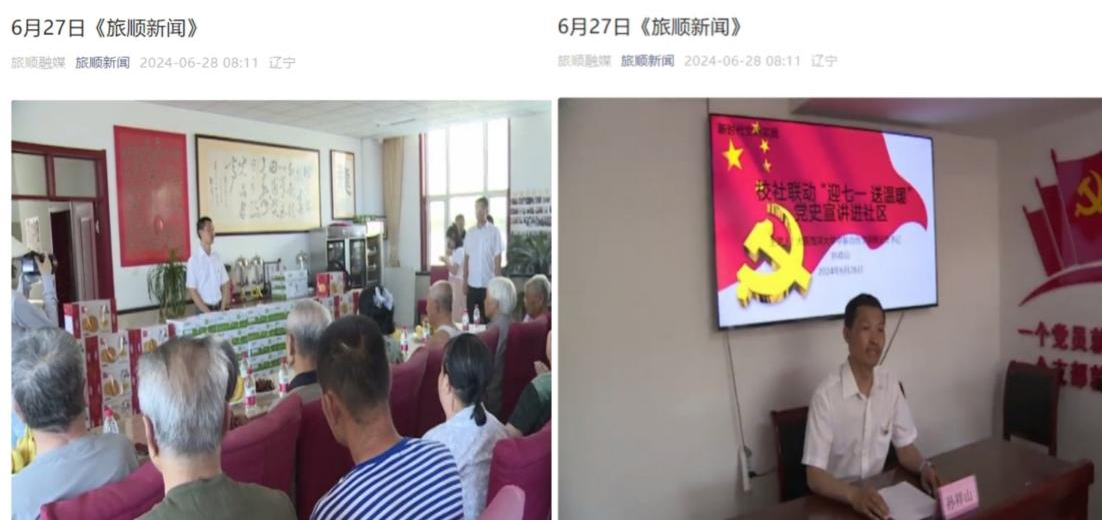 6月27日,旅顺新闻频道报道了中新合作学院与旅顺口区江西街道顺乐社区联合举办的“校社联动‘迎七一·送温暖’党史宣讲进社区”活动。