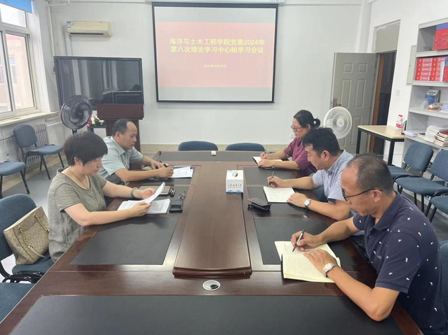 8月26日,海洋与土木工程学院党委在学院会议室召开2024年第八次理论学习中心组学习会议。学院党委理论学习中心组成员参加学习,会议由学院党委书记邓艺主持。