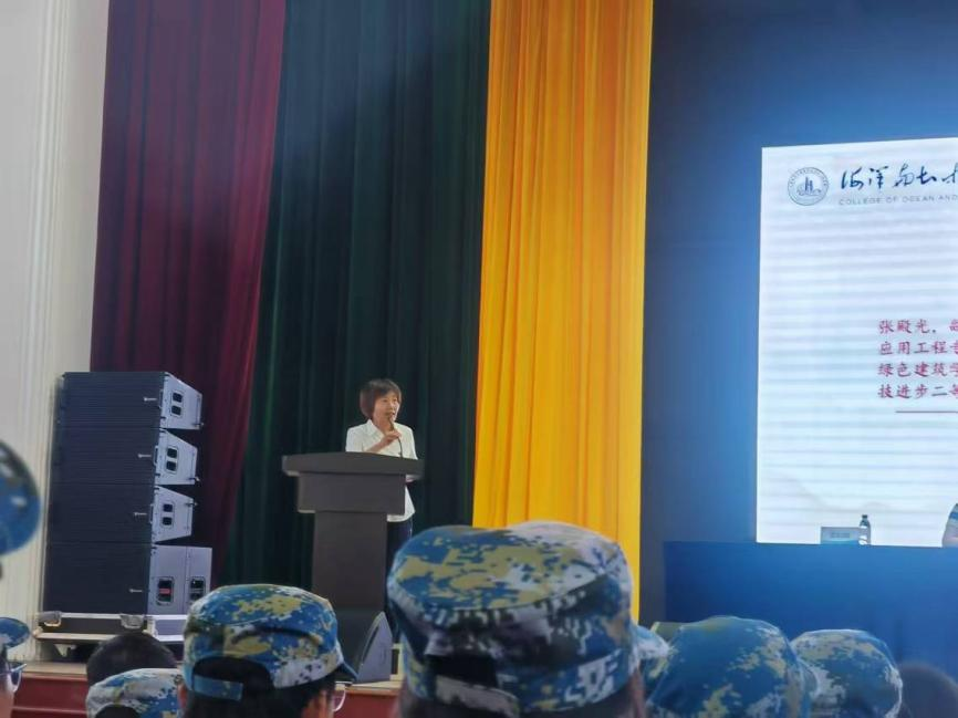 谭利娟从全院新生招生与报到情况、专业分布、性别比例、出生年份、地域来源、民族构成等数据进行总结,介绍了学院学生工作情况,并希望大家成为勤奋、务实、积极向上的海工人。