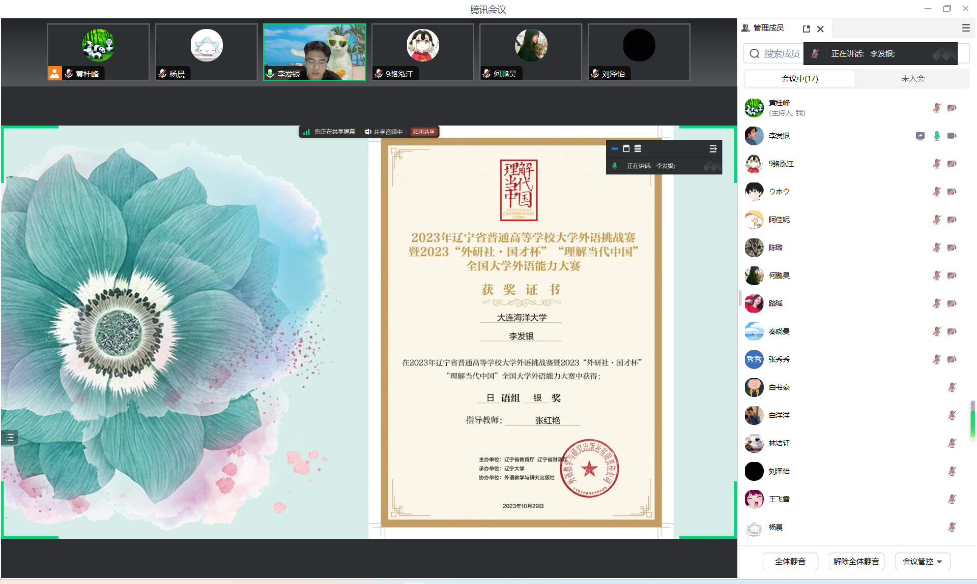 “外研社·国才杯”日语能力大赛经验分享及校赛说明会上,2023年省赛银奖获得者、日语专业2021级学生李发银进行了经验分享,他从大赛题型、参考书目、应试准备等方面分享了自己的参赛经验。日语专业负责人黄桂峰对大赛背景、备赛资源、注意事项等进行了介绍,同时明确了校赛的具体安排。