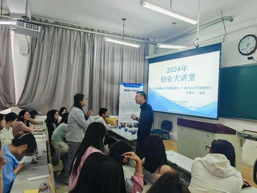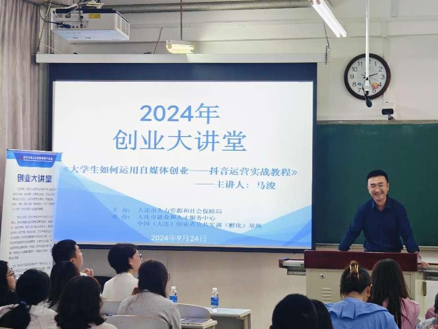 9月24日,海洋法律与人文学院于大黑石校区第二教学楼120室组织开展了“2024年创业大讲堂”专题讲座。讲座特邀大连时代未来教育科技有限公司的执行董事马浚先生作为主讲嘉宾,以“大学生如何运用自媒体创业——抖音运营实战教程”为主题,为在场师生作了精彩的分享。人力资源管理专业师生参加讲座。