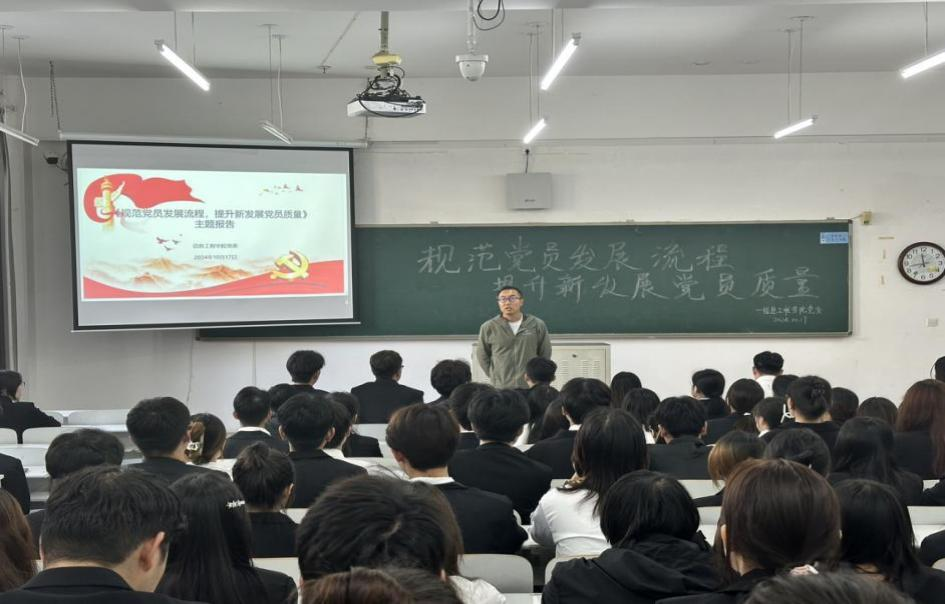 会上,修恒哲强调了党员发展工作的重要性和严肃性,规范党员发展流程是保证党员队伍先进性和纯洁性的关键环节。随后,他详细介绍了党员发展的具体流程,包括申请入党、确定入党积极分子、培养教育考察、确定发展对象、政治审查、预备党员的接收、教育考察和转正等环节。此外,他鼓励积极分子应当在学习工作、行为规范等方面切实发挥模范带头作用,展现学院学子的青春风采。
