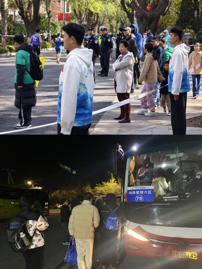 凌晨四点,晨光熹微,空气中还残留着夜的温度,我校志愿者集结完毕,抵达岗位后配合大赛组委会完成赛前的准备工作。赛事过程中,志愿者主要负责协助工作人员维护现场秩序和赛道周边交通,疏导和引导观赛群众,确保比赛线路通畅,保证运动员安全。他们在大马赛场上留下青春的身影,展现了大海大青年昂扬向上的精神风貌和专业高效的志愿服务能力。