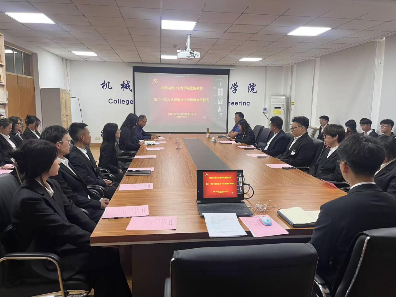 近日,机械与动力工程学院分党校在党员活动室举办第二十期入党积极分子培训班开班仪式。党总支书记赵万里、党总支副书记王磊、学生支部书记、组织员及第二十期积极分子参加会议。