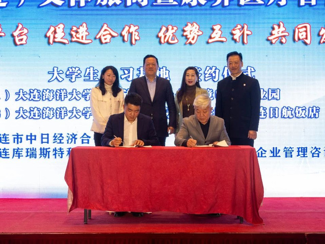 衣庆焘与大连市中日经济合作交流协会会长徐朝法共同为合作设立“中日(大连)科技人才交流基地”举行揭牌仪式。我校招生就业处与大连万众云仓跨境电商产业园、外国语与国际教育学院与大连日航饭店签订“大学生创新创业实践基地”。