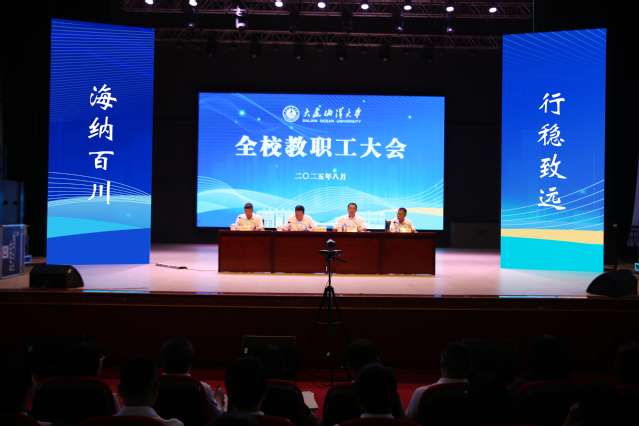 8月28日,我校在黑石礁校区俱乐部召开全校教职工大会,总结分析工作成绩和面临的形势任务,部署安排下一阶段重点工作。校党委书记衣庆焘、校长杜明出席会议并讲话,会议由校党委副书记李智军主持,校纪委书记汤尔利出席会议。