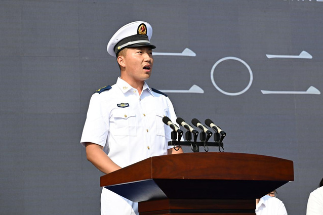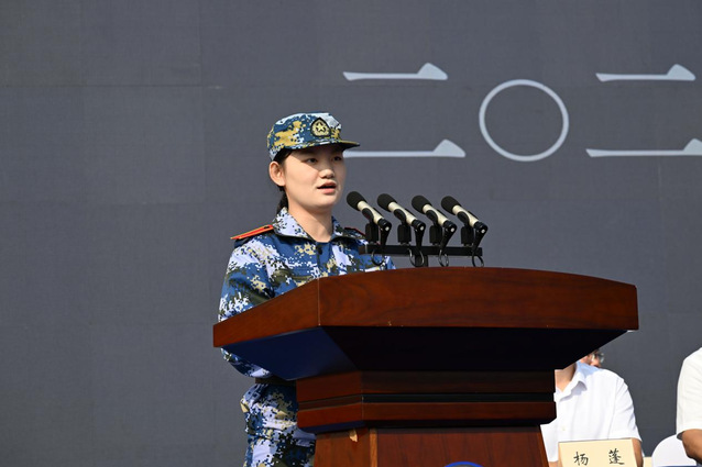 中新合作学院机械设计制造及其自动化专业2023级退伍大学生李东阳代表学生教官、海洋与土木工程学院给排水科学与工程专业薛可心代表2025级新生分别作了表态发言。
