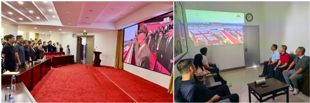 学校在黑石礁校区、大黑石校区、瓦房店校区组织16568名师生,在各校区体育场、教室、会议室等场所设立分会场,集中收看纪念中国人民抗日战争暨世界反法西斯战争胜利80周年大会直播。