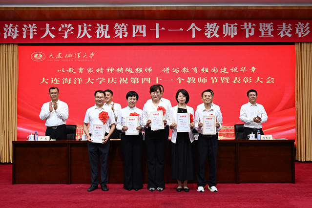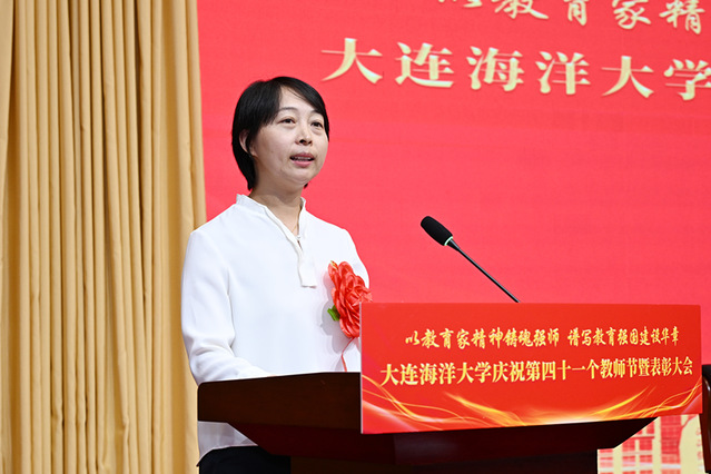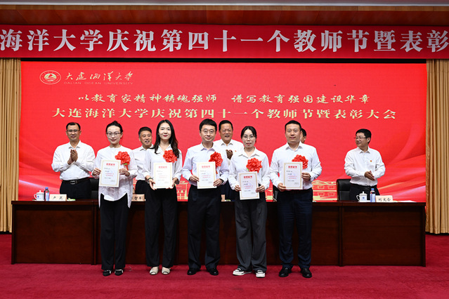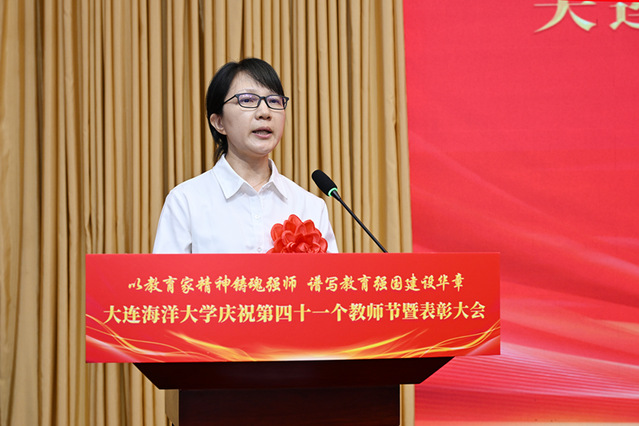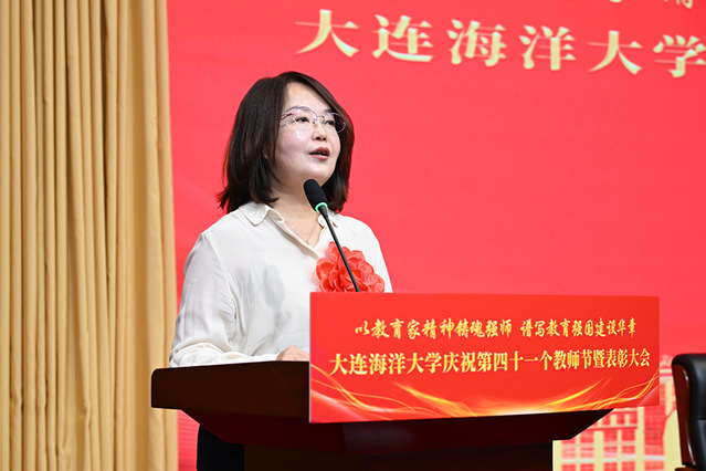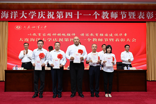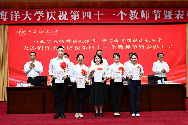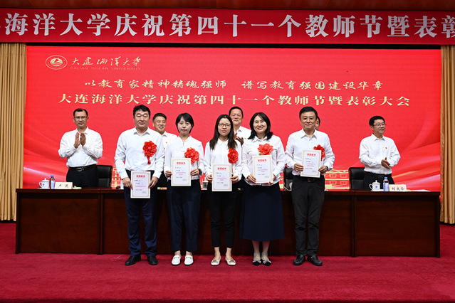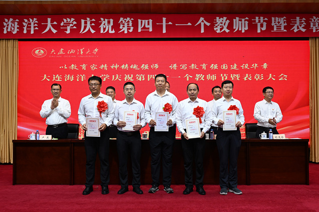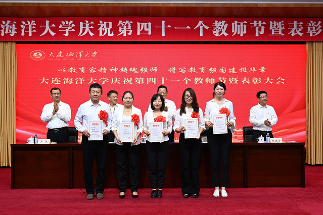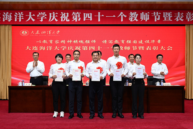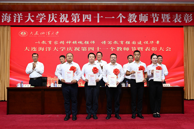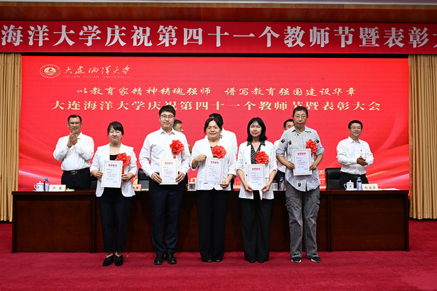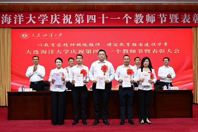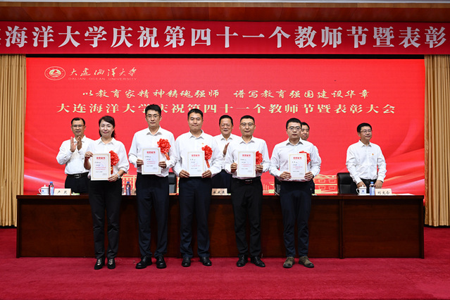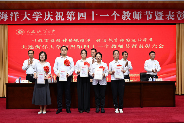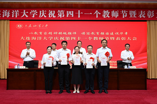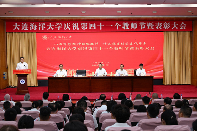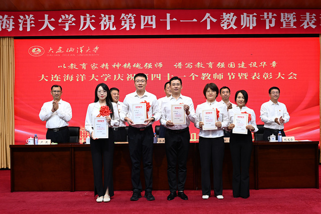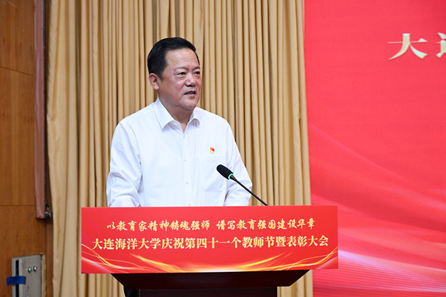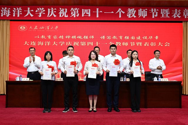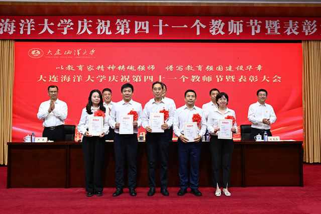 为弘扬教育家精神,表彰先进典型,9月10日,我校在图书馆报告厅隆重举行“以教育家精神铸魂强师,谱写教育强国建设华章”——大连海洋大学庆祝第四十一个教师节暨表彰大会。校党委书记衣庆焘出席会议并讲话。校领导杜明、李智军、刘文合、卢昆出席会议。获奖教师及荣休教师代表,中层干部,外籍教师,附属黑石礁小学及附属幼儿园教师代表,学生代表等近300人参加会议。会议由校党委副书记李智军主持。