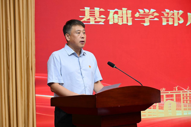 杜明代表学校对基础学部的成立表示祝贺。他指出,基础学部的设立是学校整合教学资源、优化人才培养机制的系统性改革,旨在强化公共基础课程的公共属性,遵循教学规律,全面提升基础课程教学质量。同时,有利于搭建科学的教师发展平台,构建更加完善的公共基础课程体系,进一步巩固育人根基。