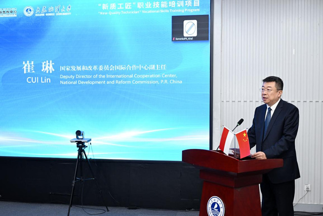 9月15日,2025年秋季“新质工匠”职业技能培训项目开学典礼在我校图书馆多功能厅顺利举行。印度尼西亚共和国基础设施与区域发展统筹部战略基础设施代理部长安迪・尤利安蒂・拉姆利通过视频连线出席仪式。中国国家发展和改革委员会国际合作中心副主任崔琳,大连市委常委、副市长李丹,大连市发展和改革委员会主任顾在浜,中国国家发展和改革委员会国际合作中心重大活动处处长王立新,大连市发展和改革委员会外资与“一带一路”建设推进处处长周天元,大连市海洋发展局一级调研员方平伟,以及我校党委书记衣庆焘、校长杜明、副校长刘文合等出席活动。我校师生代表与印度尼西亚学员共同参会。典礼由刘文合主持。