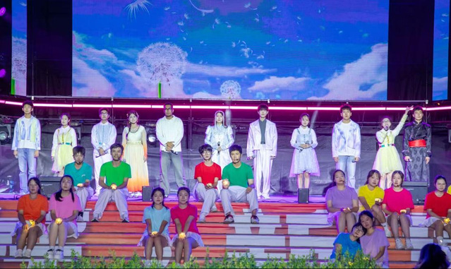 第三篇章聚焦青春梦想与时代担当,展现大海大学子的蓬勃朝气。西部计划志愿服务代表通过《落在我生命里的光》讲述奋斗故事,诠释初心不改;《像你这样的朋友》以歌舞重温同窗情谊,温暖人心;合唱《麦田里的薰衣草》《重返十七岁》唤起青春的纯粹与勇气。最后,全体演职人员代表合唱《那些喊给天空的》,鼓励学子不畏挑战、勇敢追梦,为整场晚会画上圆满句号。