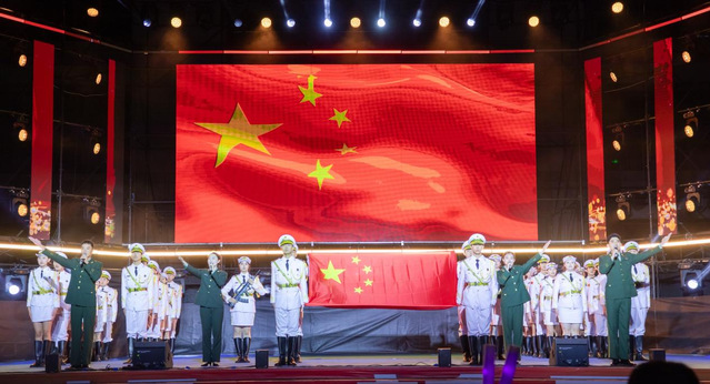 今年正值中国人民抗日战争暨世界反法西斯战争胜利80周年,本篇章以艺术形式致敬历史,传递奋斗精神。全体军训教官合唱《我爱你中国》,深情歌声唤起新生军训记忆;退伍学生代表与国旗班学生演绎《军礼》,表达对军人的崇高敬意;歌伴舞《鸿雁》勾勒出辽阔草原的壮美画卷;男高音歌唱家南洋老师演唱《草原上升起不落的太阳》,歌声悠远动人;校石榴花民族舞蹈团则以《千里万里》舞出民族风情,展现山河锦绣。